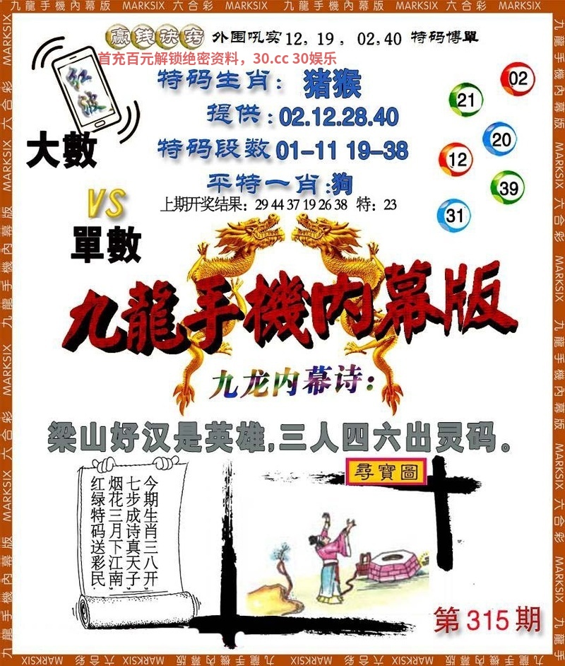 | 315期:杀三肖【龙猪马】开:虎04准 |